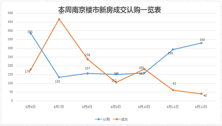 以热点城市南京为例,据南京网上房地产数据,本周(6月6日-12日)南京楼市共认购商品住宅1612套,成交1272套,日均认购约230套、成交约182套,环比上周(认购1533套,成交922套),认购量微涨约5.2%,成交量大涨约38%。
