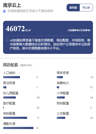 在金基望樾府周边1公里范围内,在售的项目包括金基璞悦和园、翡丽铂湾、南京云上等项目。每经品房小程序显示,南京云上项目的估值参考价约为4.6万元/平方米。