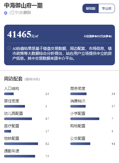 此外,该项目周边的公交配套、消费档次、商务密度等的得分也均在3.5分以上。每经品房小程序综合以上各维度测评显示,中海御山府未来5年的房价涨幅将跑平江宁区的平均涨幅,将跑赢全国平均涨幅。