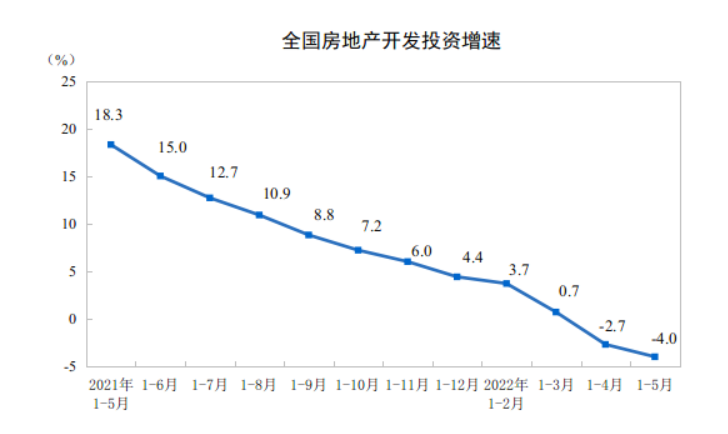 国家统计局数据显示,今年1-5月份,全国房地产开发投资52134亿元,同比下降4.0%;其中,住宅投资39521亿元,下降3.0%。